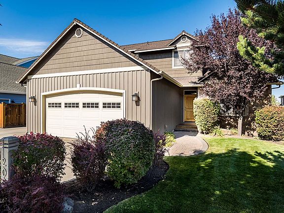 Located in the highly sought-after Yardley Estates, this custom-built home offers exceptional curb appeal and a thoughtful floor plan with high-quality finishes. Highlights include hand-scraped Amish wood flooring and beautiful stained wood trim and cabinetry throughout. In the living area, large windows and vaulted ceilings complement the floor-to-ceiling stone fireplace. Enjoy a spacious main-level primary suite with double vanity, a luxurious tiled shower, and a generous walk-in closet. The kitchen and dining area lead to a covered patio and fully-fenced backyard, and a large garage and RV parking allow for plenty of storage options. Newer updates include interior paint and carpet. Conveniently located on a quiet street minutes from everything Bend has to offer.