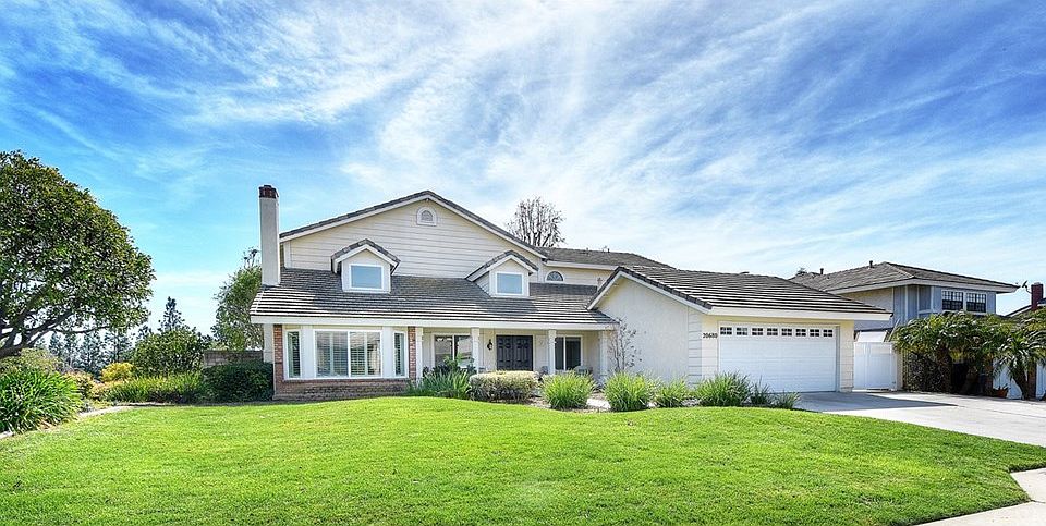 20680 Vista Del Sol is situated on a beautiful corner lot and boasts tremendous curb appeal. This rare five bedroom home is located in this highly sought-after community. The expansive front porch is welcoming and a relaxing place to take in the beautiful front yard landscaping. As you walk into the property you are greeted by soaring ceilings and a beautiful dining area. The formal living room is light and bright and has a wood burning fireplace. The updated kitchen has newer counter tops, appliances and cabinetry. The family room sliding door leads to a spacious backyard with an expansive patio that is perfect for entertaining. The main level has four bedrooms and two bathrooms, including a main level master bedroom with en suite bathroom. The second level is a generous approx. 1,000 square foot master suite with sitting area, balcony over looking the back yard, brick fireplace, large walk-in closet, workout room and over sized master bath. The master bathroom features dual sinks, shower and a large Jacuzzi tub. This home is in an award winning school district and is centrally located to the major shopping and dining areas of Yorba Linda. No mello roos and no association makes this the ideal choice.