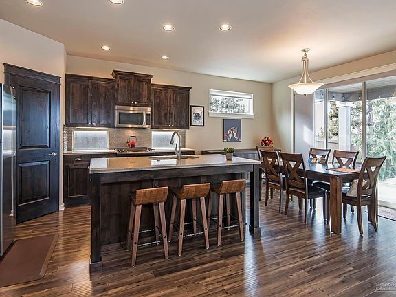 Special 4 bed home in one of the best communities in Bend, w/all the style & quality you expect from Pahlisch! Great rm features high ceilings, gas FP, entertainment wall & huge windows for beautiful views to the north. Cooks will love the big kit. w/large island/bkfast bar, acres of cabinets, stainless appliances & roomy dining area. Also a den/off & 1/2 bath on the grnd floor. All bedrooms are upstairs. Master ste is spacious, w/views of Black Butte, Mt. Hood & easterly mtns. Relax in the big soaking tub in the ensuite bath. 3 other nice sized bdrms, full bath & laundry rm are upstairs. Plus, the fantastic flex room, w/lots of windows and a view of Pilot Butte - so many possibilities - craft, family or fitness rm, game or guest rm - you decide! Yard is fenced & landscaped incl. mature trees, & the concrete & paver patio in the back yard is great for entertaining! There's even a fire pit! This cul-de-sac home backs up to a park & is close to restaurants & more. Perfect location!