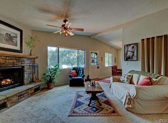 Spectacular mountain views greet you from the front deck of this updated two story home. Remodeled kitchen offers granite tile, a garden window, electric stove, refrigerator, recessed lights,walk-in pantry, breakfast bar and dining area. Dining area has door opening to front deck for outdoor dining and relaxing. Living room with a vaulted ceiling features a handsome stone fireplace and hearth, built-in display shelves and office nook. Master bedroom enjoys a ceiling fan, walk-in closet and French door to the back patio. Master bathroom features granite tile with dual sinks and tub. Inside laundry room, central heat & air. Excellent for entertaining with upgraded backyard patio, upper eating area with mountain views. Backyard is fully fenced for animals, and also features a large storage shed/workshop. Tank-less water heater, copper plumbing, large unfinished basement for extra storage. The front yard has room for 1 horse. Covered carport and driveway parking. Horse community w/public riding arena, nearby areas to board horses. Near O'Neill Park and Cleveland National Forest w/miles of hiking, biking & riding trails. Walk to country store, famous Trabuco Oaks Steak House, and neighborhood Trabuco Elementary. Excellent Saddleback Valley Schools.