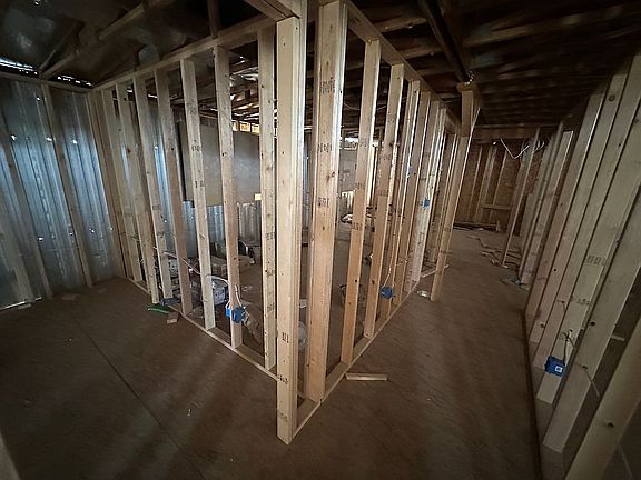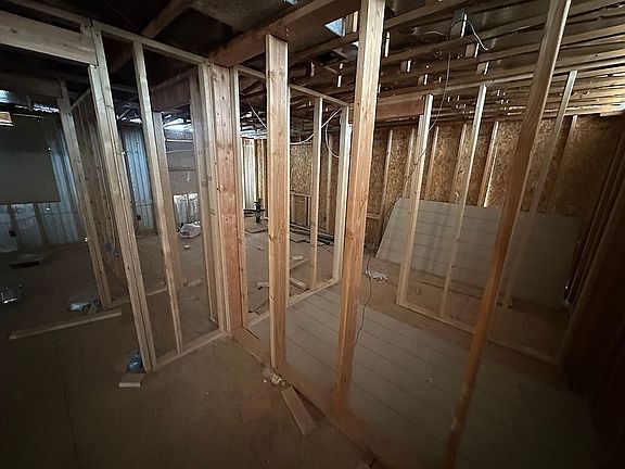 land with all utilities on lot. Electrical & plumbing rough-in complete, brand new roof.