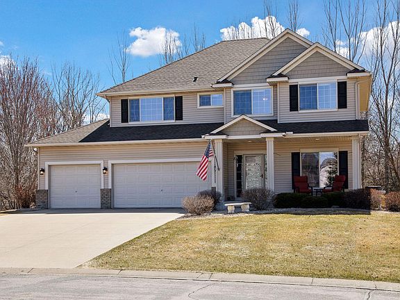 Welcome Home in the Spyglass neighborhood - This beautifully maintained 2-story home is a true gem, offering ample space, modern amenities, and thoughtful design. On the main floor, the flex space is now a dedicated office is ideal for remote work - or can easily be a library, sitting room, playroom, craft room - options are endless! Complemented by a half bath for guests. The 3-car garage with soaring 10-foot ceilings provides exceptional storage, while the concrete driveway and front porch add to the home's curb appeal. Step outside and embrace nature in the private backyard, bordered by a serene forest. The expansive deck is perfect for entertaining or simply enjoying the tranquil surroundings. The private primary bedroom on the upper level boasts a luxurious ensuite bathroom, complete with a jetted tub, separate shower and dual sinks creating a relaxing retreat. You'll also find 3 more generously sized bedrooms all perfectly placed in the upper level, a versatile loft area, and a convenient laundry room. The lower level is perfect for guests or as a private living area, featuring a 5th bedroom or home office, a large family room, and a walkout to the backyard. This home truly combines practicality and elegance in a peaceful setting. The SpyGlass neighborhood is in the perfect spot between local cities with an abundance of activities, award winning schools, delicious restaurants. Plus only 20 miles to the MSP airports!