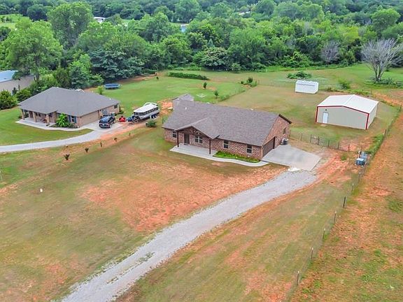 Blanchard Home on 1 acre with a 30x30 Shop. Unrestricted & out of city limits! Built-in 2018. 1,514 sqft open floor plan. Gas fireplace. Tile and carpet flooring. Granite countertops throughout. Open kitchen with island & stainless steel appliances. Master bath with dual vanities, jetted tub, walk-in shower, & privacy toilet. Water softener & debris system. Covered porch & patio. Frost-free hydrant. Insulated garage doors. Tough shed for storage. Shop is steel frame on a 6" slab. Fully insulated. The shop was built with the intention to use as a grow, upgraded electrical. Currently has 120V. 4.5 ton AC unit & heat. Filtered water & Wifi. REC for electric & Pioneer for fiber. Water well. Septic system. McClain County. Dibble schools (within 3 miles). On a State maintained Hwy. 9 miles to downtown Blanchard, OK for dining, groceries, parks, & fuel.
