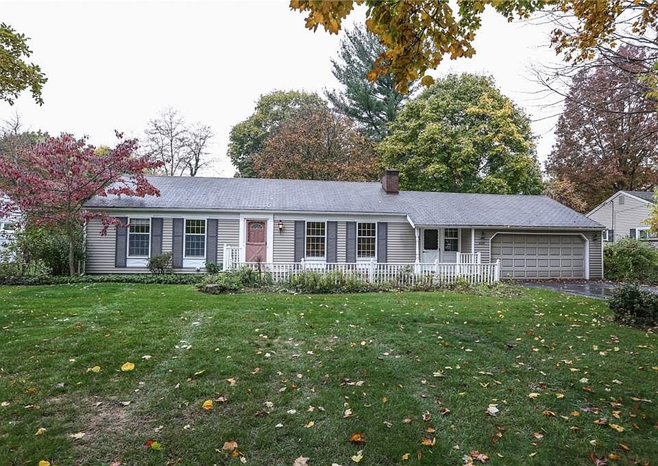 Ranch living in the heart of Penfield! Walk to Community center and village... this 4 Bedroom, 2 Bathroom home has been lovingly maintained by owners of over 60 years and is awaiting new owners! If you are a fan of the farmhouse style, imagine yourself here with the handcrafted, beamed ceiling, exposed brick wall, built ins, country kitchen and pocket doors. Gorgeous, recently exposed hardwoods throughout much of the house. Master suite addition on the back of the house walks out to back deck in beautiful private yard with mature trees and landscape. Master has en suite and walk in closet. 3 additional bedrooms and a full bath. Much of the house has been recently painted. Wood burning fireplace in the Living Room. Partially finished basement provides additional living space, awesome workshop for the wood working enthusiast and laundry. Front and rear access to the 2 car garage, and shed in backyard provide excellent storage and lawn care ease. Convenient breezeway entrance off garage and driveway. This home has so much to offer. Don't miss it! DELAYED SHOWINGS ON FILE. NO SHOWINGS UNTIL AFTER 5:00pm on 11/3/20.