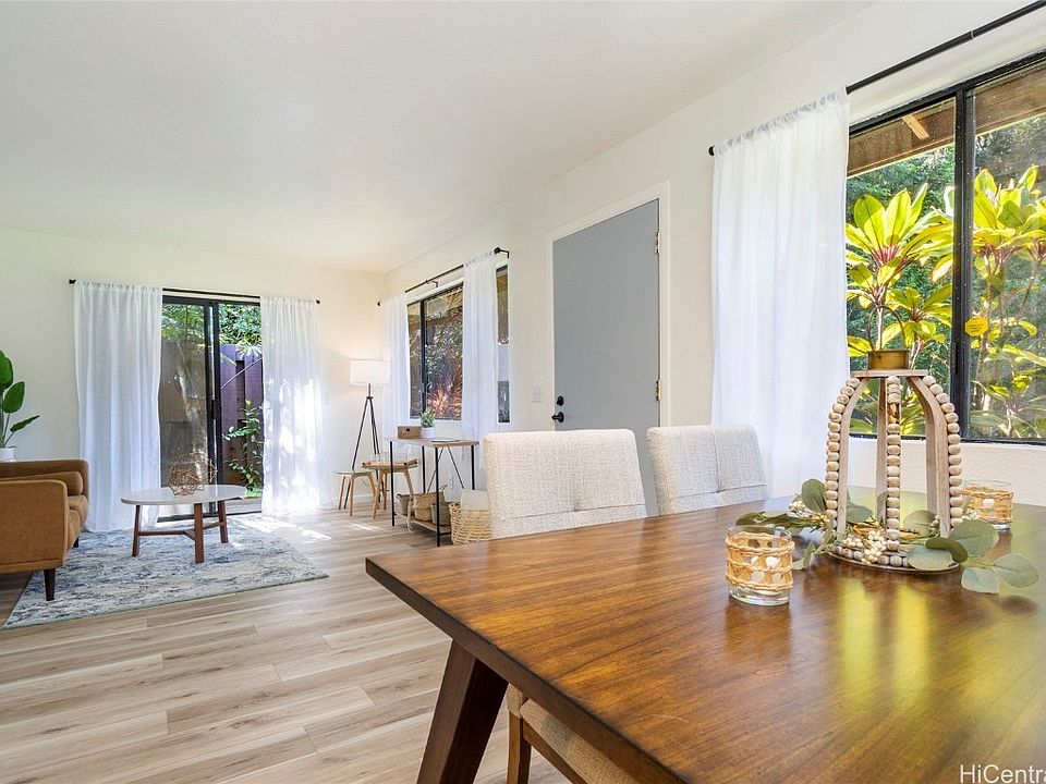 This is the Hidden Valley Estates 2 bedroom you've been waiting for! Ground level unit in a rare single story building in a quiet section of the complex. Move-in ready with extensive renovations make this an entirely fresh home! ALL NEW interior paint, Pergo luxury vinyl plank floors, baseboards and light fixtures throughout. Kitchen has new counter, sink, faucet, disposal, and cabinet hardware. Bath has new tub, tile surround, fixtures, mirror, and toilet. Bedrooms have new closet doors. No More Popcorn Ceilings! Washer/Dryer in the unit. Convenient small fenced lanai off the living room has a storage closet. Pet friendly with no weight restrictions - up to 2 pets. 2 side-by-side assigned open parking stalls are very close to the unit front door (no stairs), plus several guest parking. Reasonable HOA fees include water and sewer. For GPS please use 77 Karsten Drive. Don't miss out on this fantastic unit!
