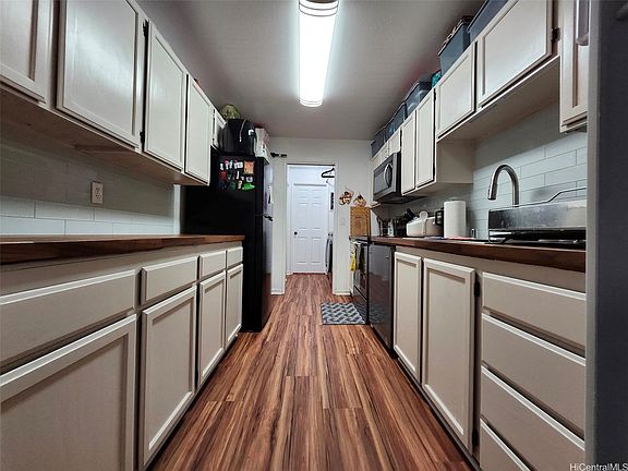 2069 California Ave # 13 C, Wahiawa. Hidden Valley Estates in Wahiawa gives you a resort like feeling with lush green lawns for the enjoyment of the residents. Pet friendly complex with lots of guest parking. This ground floor 2 bedroom, 1 bath single level home has 2 open assigned # 151 right in front of the home & # 179. Renovated Kitchen with newer appliances, Renovated bath. Sellers have converted dining room into 3rd bedroom by adding a sliding door that can be easily removed. Laminated floors, ceiling fans & a split AC unit in the living room. Cute small fenced in patio. Surrounded by vast green gardens & beautiful trees. All rooms overlook the lush gardens with picnic tables maintained by the HOA. Located close to shops, restaurants, schools, parks, Wheeler & Schofield Base & a short drive to Haleiwa, Dole Plantation & all the beautiful beaches.