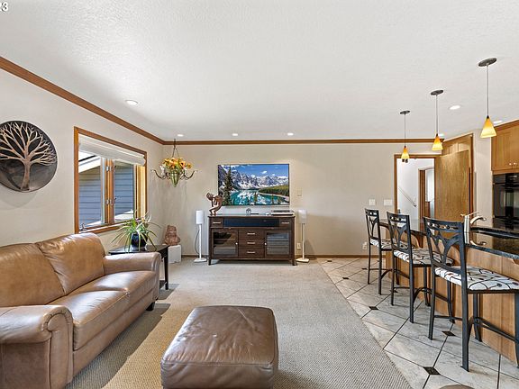 Don't miss this great 4 bedroom, 3 full bath home at the end of a cul-de-sac in North Bend! From the front door you walk into a tiled entry area with access to the great kitchen and family room, formal living room, primary bedroom and stairs to either up stairs or down stairs. The kitchen has updated cabinets with granite counter tops, tile floor, stainless steel appliances, including a double stack oven and propane cook top and island. The kitchen is open to the family room that has nice carpet and a great layout with lots of natural light from the many windows. The formal dining room wraps around from the kitchen and has an open concept with the living room. The formal living room features a vaulted wood ceiling, cork flooring and windows to the forested private back yard. French doors from the dining living room area lead you out into a beautiful enclosed sun porch that brings the outdoors in with skylights and a wall of windows. This room is light and bright with tile flooring and views of a private forest, hot tub and propane fire pit. Also, on the main level is the primary suite. The primary suite has nice carpet flooring, a walk in closet with storage, an attached bathroom with tile floor and shower all of which are beautifully done. Taking a few stairs down you will find the nice sized laundry room w/built ins, oversized 2 car garage with tons of storage and a second primary suite. The second primary suite could also be a large office with built in shelves and a nice updated bathroom attached to this space making it perfect for many uses. Upstairs you have 2 great sized bedrooms with built ins and a full bathroom that will be completely remodeled this month. Upstairs bedroom 2 has a bay view of the bridge. On the exterior of the home you have ample parking, mature landscaping with sprinklers, a private back yard oasis with a stamped concrete patio, hot tub and a propane fire pit. This home really has it all!! WATCH VIDEO TOUR and call for a showing!