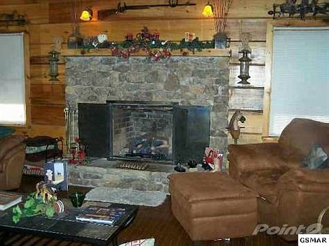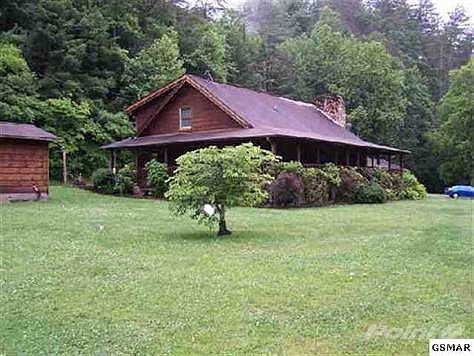 Log Home sitting in East Tennessee Valley of Sevier County on 125 acres with large flowing creek flowing through the front yard of this 3 bedroom 2 1/2 bath Ranch style home, hardwood flooring, stone fireplace, cathedral ceiling, pine tongue and groove interior walls. Wrap around porch to relax while enjoying the peaceful country style living. Equipment shed, barn with bunk house, riding trails throughout the mountains which surrounds this secluded home and acreage.