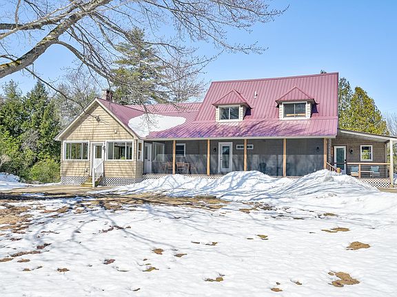 A home full of pleasant surprises awaits you just outside of Center Conway Village. Access a well landscaped lot with a large paved driveway. The four car garage offers plenty of storage and has a loft above. Enter into a large enclosed porch on the back of the house that leads to a spacious mudroom. The open living/kitchen/dining area has hardwood floors, custom cabinetry, a gas fireplace and large bay windows. The primary bedroom has been reconfigured and gives access to a large walk in closet with a fully equipped primary bathroom. Completely redesigned, this bath features a new vanity, ceramic floor, a soaking and a shower with steam and bluetooth sound system. The upstairs has two bedrooms, a full bath and its own living room. Just off the kitchen is a finished sun room that looks out over a patio and garden area. To the right of the garage is a generator to keep the property going during outages. Venture a little further into the back yard to find a storage shed and a beautiful open, flat area with views to the mountains. The property has a solar field on the back portion of the lot that pays the owners a monthly lease rate and a complete in law apartment below the house with its own access of the main road. This is a rare chance to own a property that gives you plenty of space and pays you an income of about $2400 per month. Lastly, if you are a VA buyer, there is an option for an assumable mortgage that could secure an interest rate roughly half the current rates.