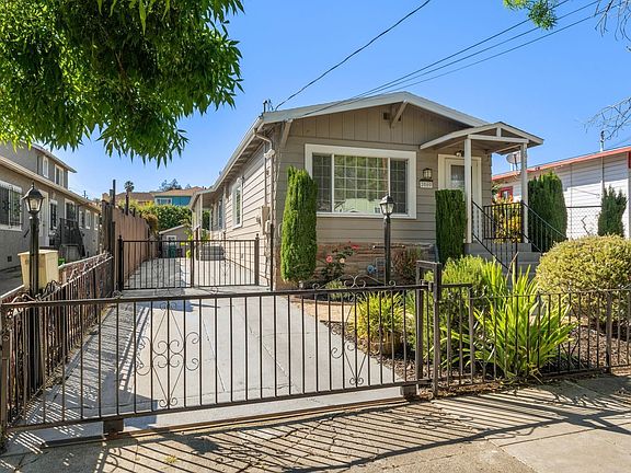 WHY RENT WHEN YOU CAN OWN this wonderful move-in ready home, boasting 2 oversized bedrooms and 2 full bathrooms, beaming hardwood floors and large windows that radiate tons of natural sunlight & create a bright & cheerful living space. A welcoming foyer & living room, large eat-in kitchen, dedicated laundry room & lots of upgrades throughout add to the homes convenience & comfort. Imagine never looking for parking again! This home has an extended driveway, and a large lot with a fully fenced yard. The private, & beautifully landscaped backyard oasis is an ideal space to dine al-fresco, garden, play, host cookouts, & discover endless opportunities for enjoyment & relaxation. Start an urban garden in your own backyard, garden beds await your green thumb and imagination. Have you been dreaming of an ADU conversion, office, gym or she-shed? The very large detached garage, could be exactly what you've been looking for. The possibilities for this space are endless. Conveniently located near cafes, restaurants, shopping, schools, hospitals, & public transportation options, such as BART & buses; and just a short drive to local highways, make the homes location unbeatable. The perfect blend of classic charm, modern convenience, & outdoor space. This home is a must see!