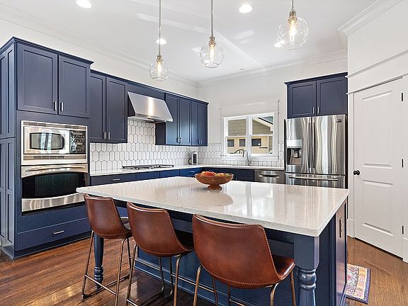 Perfectly maintained and updated three-story Craftsman style home in walking distance to Lake Claire Park, Kirkwood shops/ dining and Candler Park area and less than 2 miles to Decatur Square. The main floor boasts dark hardwoods and a brand new kitchen with painted navy cabinets, quartz counters, new lighting and backsplash, kraus composite sink, new Bosch dishwasher, hardware, and fixtures. Large walk in pantry. Two spacious living areas. Living room with coffered ceiling and family room with gas fireplace and built in bookcases. Large dining area separates the spaces but keeps everything open for entertaining. Guest suite on main with full bath and an additional half bath. Walk out from family room to fenced backyard with extensive stone patio and outdoor fireplace. You will spend hours out here! The second level has owners suite with hardwoods and large spa bath and two additional bedrooms. The third floor makes a great media room or home office but can also be an additional bedroom with full bath. Detached one car garage with storage room. Well maintained with new roof. Great neighbors and area, quiet street. Come join the fun as we head into summer!