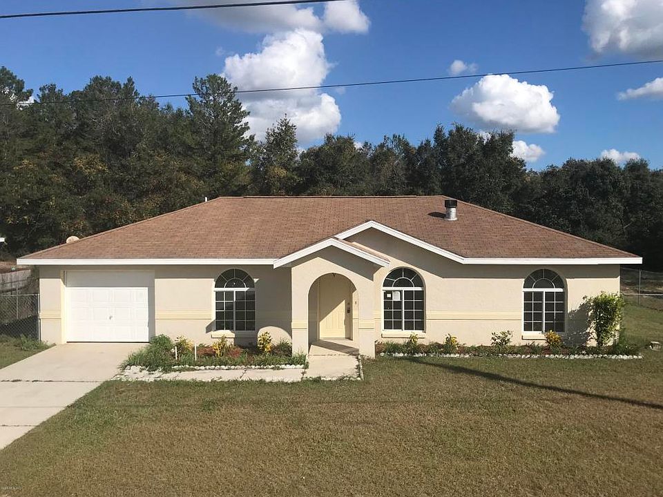 Newly updated 3 bedroom, 2 bath, 1 car home located on .23 acres in Marion Oaks. Freshly painted inside and out. New A/C. New stainless steel Kenmore appliances in the kitchen. New plush carpet in the bedrooms. Home also features ceramic tile throughout the kitchen and living areas. Features include Eat-in kitchen, fireplace, indoor laundry room, and more! Home backs up to the greenbelt.