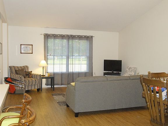 This well-kept, move-in ready home is located within the Liberty Village retirement community. The home includes tiled entry way with large coat closet, open-concept living/dining/kitchen; master bedroom with ensuite bathroom and walk-in closet; second bedroom with full bath located directly across hallway; den which opens to screened-in porch; laundry room; and a two-car attached garage with generous storage cabinets. All appliances are included - electric glass-top stove, microwave/exhaust hood, refrigerator, dishwasher, garbage disposal, washer and dryer. Window treatments include Levelor wood blinds throughout. Backyard looks out over a beautiful wooded area. Lots of storage throughout. Much of the flooring was replaced in 2016 with easy-care, high-quality wood-look vinyl laminate. Owners must be 55 year of age or older, and abide by association rules. HOA fees include all lawn care and snow removal. Many other Liberty Village benefits are included.