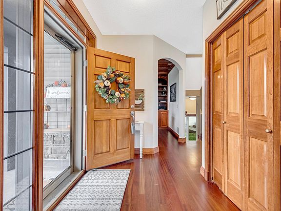 Fantastic two-story home in a great neighborhood! With amenities inside and out, this home is a must see. The main floor highlights include hardwood floors throughout, both formal and informal dining, gourmet kitchen, office, vaulted living room with gas fireplace and more. The kitchen features stainless appliances, a breakfast bar perfect for casual dining or entertaining and opens to the vaulted living room. The main floor office is well-accented with built-ins, pendant lighting and coffered ceilings. Don’t miss the huge theater room in the lower level and wet bar with stainless appliances. The upper-level features three bedrooms and loft with the primary bedroom featuring a walk-in closet and private bath with jacuzzi tub. Tons of storage all around, heated garage, paver patio, irrigation system and more. This home is amazing and is a must-see! Don’t miss this one!