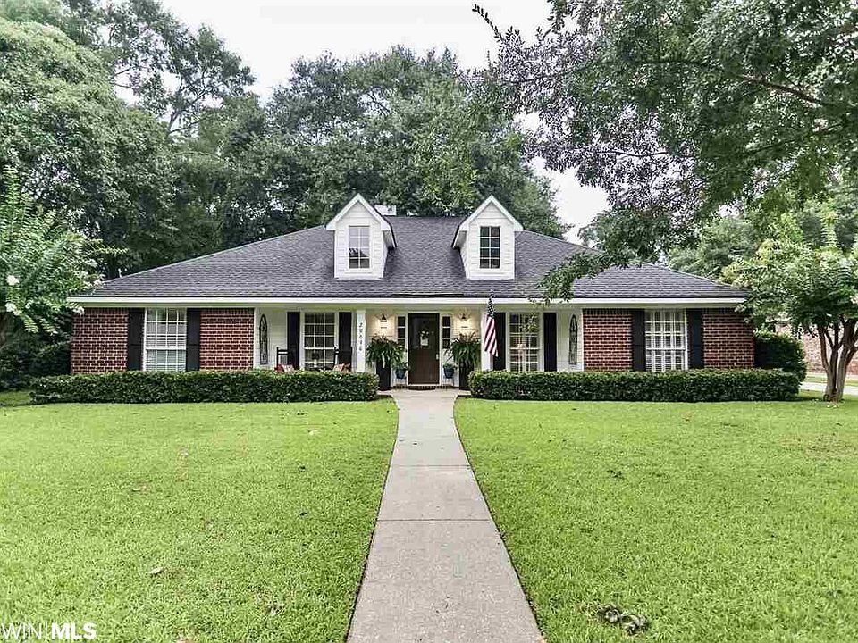 Custom built 4 Bedroom home with 2 and a half baths located just of Gayfer Extension in quiet White Grove community (NO HOA!). The inviting foyer welcomes you into the formal dining room followed by the updated kitchen, breakfast area, and living room with charming wood burning fireplace. The sunroom is a great spot to take advantage of the beautiful near 1/2 yard draped with a gorgeous oak tree. The immense master bedroom with trayed ceiling and master bathroom with garden tub and separate shower make for the perfect retreat! Hardwood floors, split brick, and tile through out - NO CARPET! Perfectly placed 1/2 bath just inside the laundry room with built in cabinetry. Enjoy the lush satsuma tree located beside the adorable utility shed. NEW KITCHEN APPLIANCES 2019, NEW EXTERIOR PAINT 2019, NEW HVAC 2018, NEW WATER HEATER 2018.