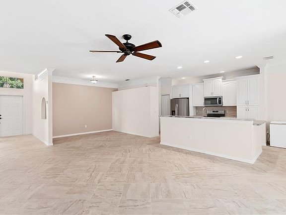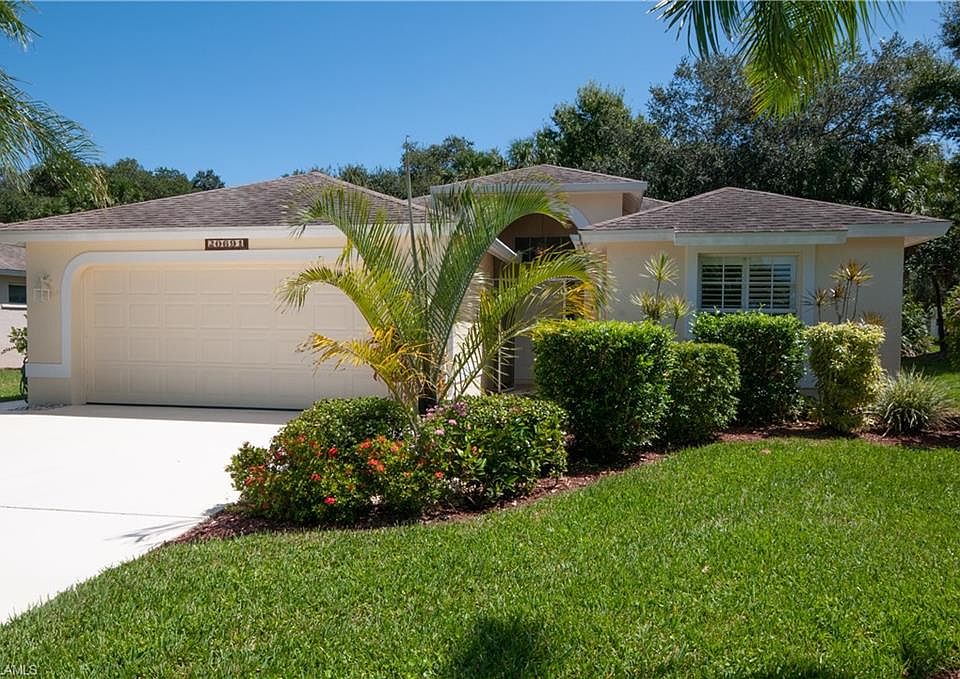 REDUCED to sell. NEW exterior paint Sept 2019. Over $45,000 in upgrades. Diagonal Tile throughout the entire house, Plantation Shutters, upgraded Kitchen cabinets with sliders for easy access. Whirlpool & Kitchen Aide kitchen appliances and upgraded Laundry cabinets and sink add to this sought after Dover Model. Oversized Garage allows more space for storage. Air Conditioning replaced in 2015 including the compressor and air handler expansion for improved air circulation. All of this for under $300,000. This sought after Dover Model in this desired community near Shopping, Airport, Hertz Arena and Gulf Coast University has everything to offer. Low Fees, Golf, 5 tennis courts , Pool walking distance and Clubhouse with restaurant add to the ambiance of this communitty. Motivated Seller.
