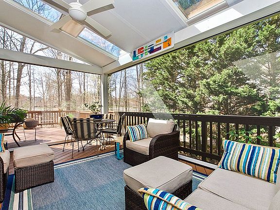 Welcome home to this beautifully renovated 5 BR, 3 1/2 Bath cul-de-sac home in Cascades with over 3500 sqft! Large scenic yard with flagstone patio/courtyard in the front and peaceful woods and stream in the back. The contemporary 3 seasons screened back porch is a stunner with remote controlled motorized screen walls, 2 skylights, fan, dimming lights that opens up to a large private wraparound deck. If you love to entertain inside and out, this is the perfect home for you. The entertaining options are boundless. Stunning updated kitchen with natural cherry wood cabinets, granite countertops, under counter lighting, large island, natural travertine stone backsplash, wall oven with microwave and open to both dining and family rooms. Spacious sun-lit owners bedroom and Zen-like spa bathroom suite with large (2 person) soaker tub, open shower, contemporary vanity, natural slate tiles and "Tao" tile flooring with thermostat controlled floor heating. Also on the upper level, there's a smaller room that would a perfect office, nursery room or a fabulous walk in closet. The large finished basement has a self-contained apartment with interior and exterior entrance onto private patio. Includes kitchen and large closet and storage area. Basement includes separate wood/hobby workshop with interior and exterior entrances. There is also a private laundry space for guests. Environmentally friendly cornsilk carpet on upper level. Main laundry is conveniently located on upper level. Leland Cypress trees in back offer privacy from neighbors. The 2-car garage has side storage room with fridge + mezzanine storage area. New garage doors installed 2020. Enjoy the plentiful and convenient Cascades amenities! Easy walk to elementary school, Cascades Community Center with pool, and local shops. Great walking paths throughout neighborhood and close to lots of hiking trails along the Potomac River. A commuter's dream location within minutes of Dulles Airport, RT7, Rt 28, Reston Metro station and more!