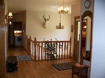 Custom built 4000 square foot 4 bedroom home using all highest quality building materials. Oak cabinets, 3/4 inch oak flooring in most of the main level and Oak 6-panel doors and trom. Double sinks in master bath. Walls inslulated with R22 ceiling R60. Heated and insulated garage with area for wood working projects featuring a welder receptacle, 17 20 amp receptacles and 4 220 amp receptacles. A wide stairway accesses the main and lower levels.
