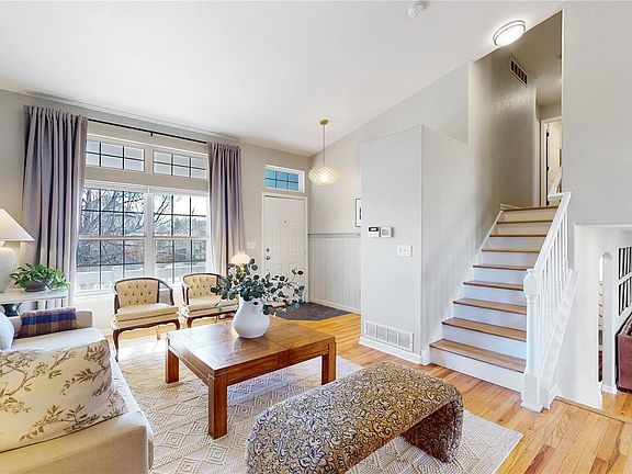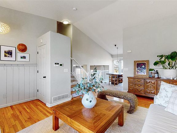- Description: Very Welcoming Living Room With Expansive Vaulted Ceilings And Hardwood Floors