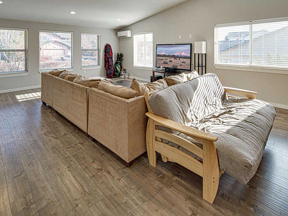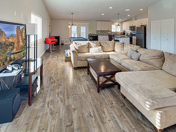 Turn-key home in NE Bend nestled against a lava outcropping in the Vista Ridge subdivision just down the street from Boyd Park. Single level w/Vaulted great room & open floorplan that brings in an abundance of light. Home was completely rebuilt 2 years ago & is like new! Engineered wood look flooring throughout main living areas & bedrooms for a cohesive look & no carpet! Open Kitchen features a lg central island w/breakfast bar seating & granite counter tops & full height backsplash. Modern custom cabinetry w/slow close feature, undercabinet lighting & brushed nickel hardware. Dining area has a french doors that open to the back yard & deck for convenient grilling & entertaining. Primary bedroom is lg enough for a King sized bed w/ a walk-in shower in Primary Bath. Two additional large bedrooms w/ shared bath. Both shower surrounds are solid Quartz! Ductless heating & cooling, the latest efficiencies & a dbl garage & RV space too. Low maint. landscape & move in ready! *SEE OPEN HOUSE