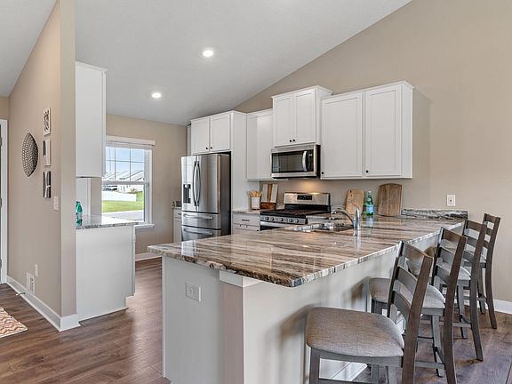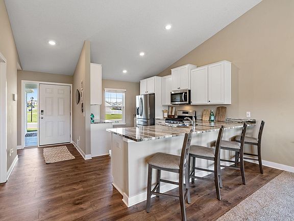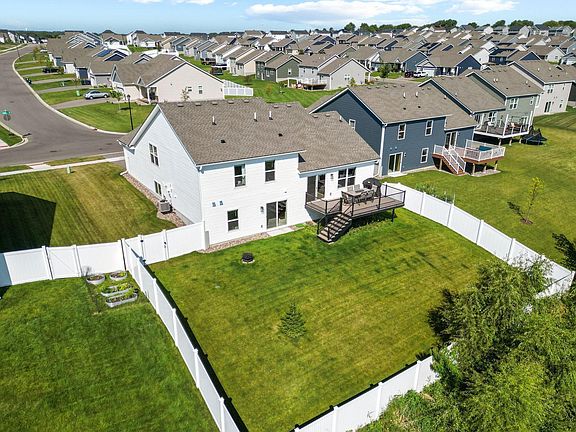 Welcome to this stunning, like-new home with all the perks of new construction but already upgraded with a deck and fence! Built in 2022 and only available due to relocation, this open-concept design features vaulted ceilings and abundant natural light. The large kitchen features granite countertops, stainless steel appliances, and a breakfast bar, flowing seamlessly into the living room and informal dining area! Upstairs, you'll find 3 bedrooms and 2 bathrooms, including the Primary Suite with a private bath and walk-in closet. The finished lower level offers a walkout, 4th bedroom, full bathroom, laundry, and plenty of storage. Recent upgrades include a maintenance-free deck and fully fenced backyard w/ irrigation system. Ideally located near Downtown Lakeville and within walking distance to parks, trails, and so much more!