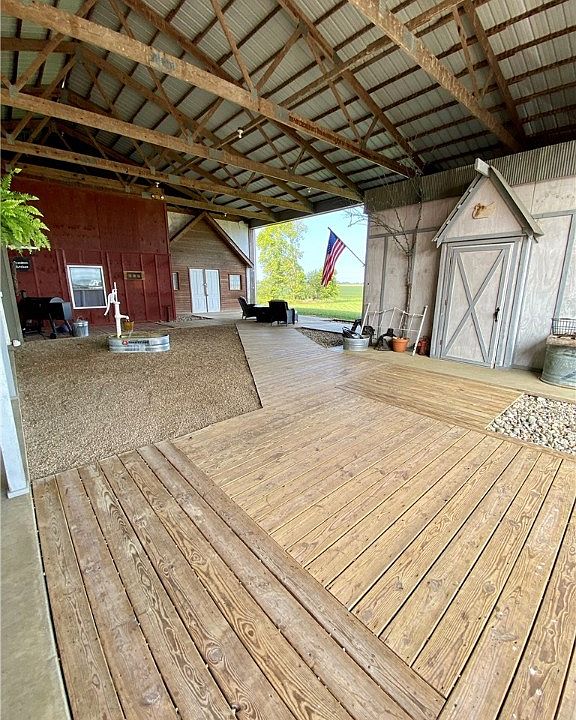 VERY UNIQUE property. Was once"Country Delights Farm". This "barndominium" is now a personal home with luxury vinyl tile floors throughout. The kitchen is high quality with newer appliances, many windows are newer, the well was ALL NEW in 2020, the well water is an aquaphor, the wood burner in the family room heats the whole house but has forced air gas heat too. Although only one bedroom (the walkin closet is off the bathroom), there are 2 unfinished rooms with concrete floors, heat, and central air...just waiting to be finished into bedrooms, more bathrooms, with its own outside entrance. This has unlimited potential. This began as an 80x60 barn and part of the outside is a covered area again with unlimited potential. The outside area has decking, 2 working restrooms (not counted in bathroom total), and the entire barn can be closed in, in climate weather. The unlimited potential includes a possible VENUE, campground, building site for cabins, farm to table restaurant and more!