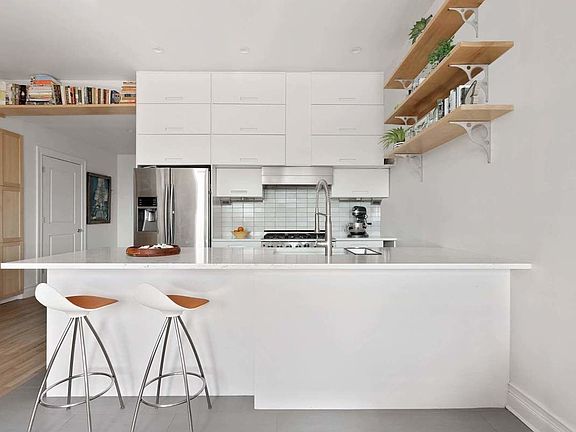 AN OUTDOOR OASIS-Welcome to a stunning oversized 2 bedroom / 2 bath condo that has it all, located in charming & quiet Greenwood Heights, right on the southern edge of Park Slope. The covetable, loftlike footprint is wide, tall, and bathed in light from all angles. The bright, modernist renovation birthed a massive chef's kitchen with floor to ceiling cabinetry, marble filled bathrooms, and top quality fixtures & finishes throughout - Grohe, Duravit, KitchenAid, Heath Ceramics, and a 6 burner Capital Precision stove with a rotisserie. Paired with the incredible main space is an 830+ square foot private rooftop with unobstructed 360 degree views of Manhattan, New York Harbor & the Statue of Liberty, Brownstone Brooklyn, and the endless treetops. This apartment was tailor made for hosting and entertaining. This outdoor space is also an oasis of nature, with gorgeous sunsets most evenings, a full-sun vegetable garden, and beautiful bird watching due to the proximity of Greenwood Cemetery. Sunsets can be found on Instagram @bksunsetapt. The apartment and building offer numerous other things to help check off your wishlist - elevator, powerful split system A/C, a small balcony off the second bedroom, tree-lined street, 10 years remaining of a tax abatement, dedicated storage in the basement. Everything you need is nearby, including historic Greenwood Cemetery, Prospect Park, all the art & fun of Gowanus, Industry City, the subway 3 blocks away, and all the conveniences of Park Slope within walking distance. Not to be missed.