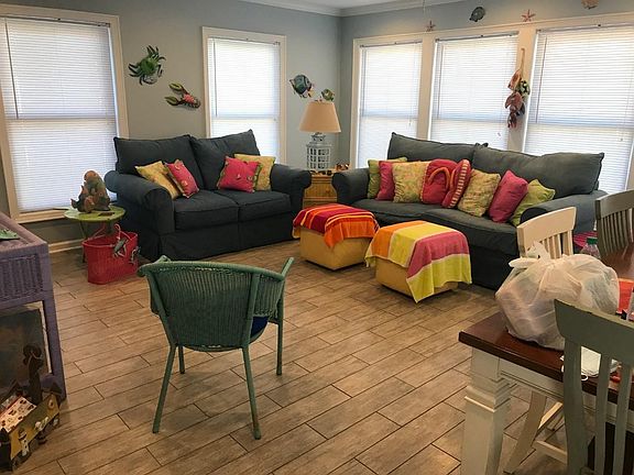 The home is advertised on Zillow, however, in order to be considered, all tenants over the age of 18, must complete an application thru a website called Avail. Please do not apply thru Zillow. If you are interested in this property, call me on the number listed on Zillow and I will forward you the Avail website. Single family home with 2 bedrooms, 1 bath, living room, dining area and kitchen. This home has been completely remodeled to include stainless steel appliances, custom built kitchen/bathroom cabinets (white), tile backsplash, crown molding throughout, ceiling fans, open concept, tile plank flooring throughout, 2 outdoor decks, subway tile in tub/shower, central heat/air and much more. With the home only being two streets from public beach access, you can walk in minutes in lieu of driving. Centrally located on the island, this home is one block from the park, YMCA, and it's on the bike path. Listen to the ocean in the evening, and enjoy all the comforts this home has to offer! Tenant is responsible for all utilities. No smoking allowed. No pets allowed. No parking under house or deck. Security deposit due at signing. Tenant must process thru AVAIL and sign a lease.