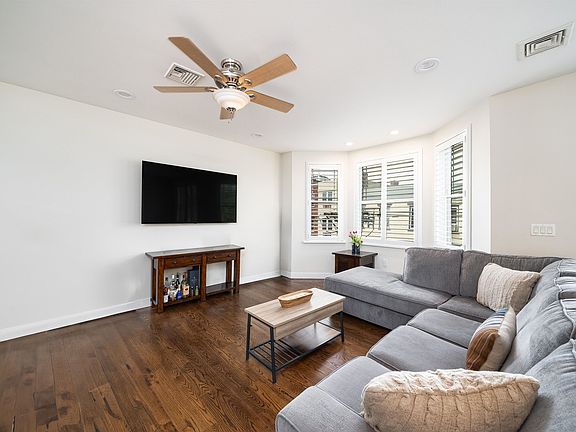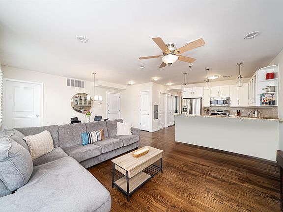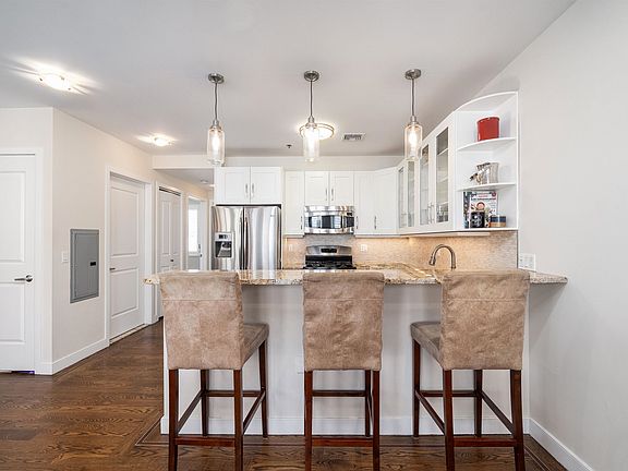 207 2nd Street is an intimate 8-unit building, offering a serene escape and privacy with only two homes per floor. Built in 2009, an elevator building in downtown Hoboken, this 3-bedroom, 2-bathroom condominium offers a lifestyle of unparalleled convenience. This condo boasts an inviting layout flooded with natural light, with expansive bay windows in the living area and primary bedroom. Entertain in style with a seamless open floor plan, delineating distinct living and dining spaces. Three generously sized bedrooms are perfect for guests or a growing family. The exquisitely designed kitchen, adorned with sleek white maple cabinetry, luxurious granite countertops, and a stunning limestone backsplash. A spacious breakfast bar, under-cabinet lighting, and GE Profile Series stainless steel appliances round out the design. The primary bedroom is a sanctuary, ample space for a king-sized bed, an en-suite bathroom with a granite countertop vanity and contemporary tile design. Organization is effortless with custom closets throughout, while recessed lights add a touch of modern elegance. Enjoy the convenience of in-unit washer/dryer and a separate needed storage space. Additional highlights include central heat/AC, an on-demand tankless hot water heater, three ceiling fans, and oak hardwood floors with a charming mahogany inlay border. Take advantage of the building's elevator and common outdoor space, perfect for enjoying fresh air and mingling with neighbors. With multiple parking garages within walking distance, bustling Washington Street, and the Hoboken Path, urban convenience right at your door.