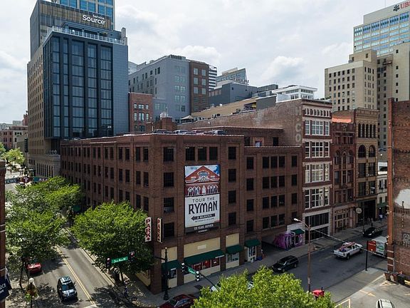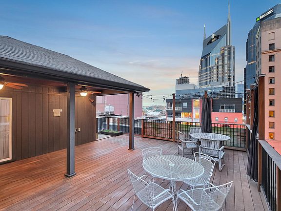 Stunning rare 3183 sq ft penthouse plus 600 sq ft rooftop terrace, views of Nissan Stadium, Ascend Amphitheater, Printers Alley & Batman Building. Nothing like it in the city. 2 fireplaces, exposed brick, original beams, hardwoods & granite, Chefs Kitchen with gas cooking. Restored building in historic district. Attached garage parking for multiple cars & private entry w/ elevator to penthouse. Live in the heart of Nashville. Rentable; Short Term not currently allowed but up for HOA vote soon.