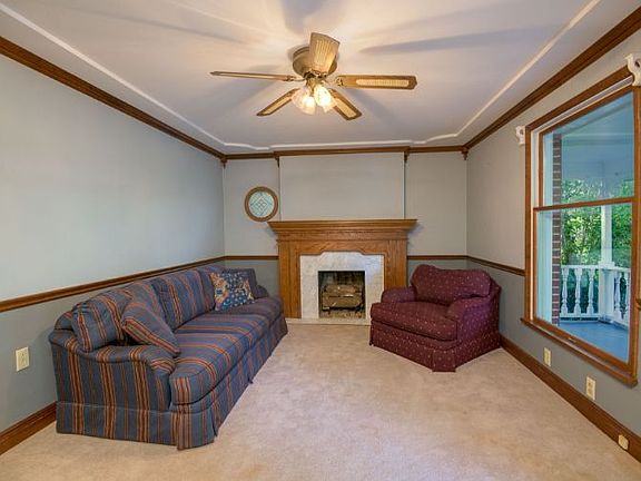 All brick charming cottage with covered front porch, park like setting backyard, two bedrooms, formal living room with gas log fireplace, den with gas log fireplace, detached 1 car garage, fenced backyard, dining room, upstairs partially finished with full length attic and lots of outdoor living spaces great for entertaining.