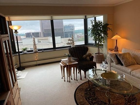 This newly listed tenth floor, one bedroom condo with great views of downtown. Located a block from Mayo Clinic and across the street from the Baldwin Building and subway system in the heart of downtown Rochester with underground parking and very clean! A secured building that is extremely safe. Underground parking spot and is completely finished. Appliances: Dishwasher; Range/Stove; Refrigerator; Microwave Amenities - Interior: Dining room/study; master bathroom; lots of closet space; intercom Amenities included in building: Exercise Room; Pool; Security Building, Elevators, Laundry Facilities Rent is 1,500 a month and is furnished as needed, all utilities are included (heat, AC, garbage, basic internet, TV) except electricity. This is a no smoking unit All utilities are covered except electricity which in the past has averaged around $40 a month A parking spot is available with underground parking (perfect for MN winters)