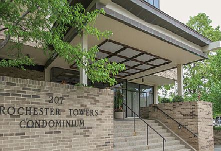 High rise condo overlooking the beautiful city. Don't miss out on this perfectly located 3 bedroom, 2 bathroom unit adjacent to the subway connecting to the clinic and all that downtown Rochester has to offer. This spacious and updated condo boasts maple cabinets, granite counter tops, & stainless steel appliances. Hardwood laminate flooring throughout most of the unit. Over-sized family room with very large bay windows to see all of downtown. Master suite with two full sized closets and updated bath. Two additional bedrooms & full bath with an in-unit washer and dryer in the unit. Rochester Towers offers an elevator, with a brand new remodeled inside heated pool, library, fitness room and heated garage. 1 months rent for damage deposit. Pets on a case by case basis. NS. Tenant is responsible for electrical for this unit (averages $50 per month). Internet is included as well (cable available for a fee through Jaguar). 6.Property offered for rent by Dwell Management Group of Rochester, MN.