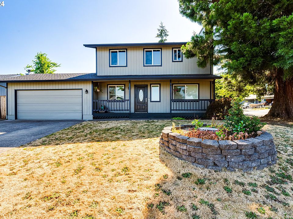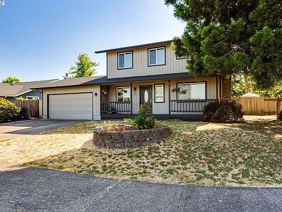 New Price!! This lovely home with covered front porch, nestled in a quiet neighborhood in Thurston is one you don't want to miss. It offers 3 bedrooms plus a den/office or additional 4th bedroom! Cozy livingroom with wood burning fireplace, updated kitchen with Stainless steel appliances, quartz counters and lots of counterspace. Downstairs also features a 1/2 bath for guests and indoor laundryroom. Upstairs we have 2 bedrooms and a spacious primary suite with walk-in closet and attached bathroom. Expansive fenced backyard with covered patio, perfect for entertaining, raised garden beds and large shed for all of your tools. Close to schools, restaurants and shopping! Call for your private viewing today!