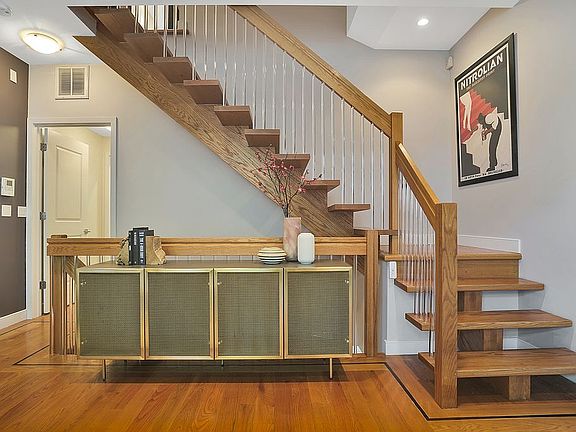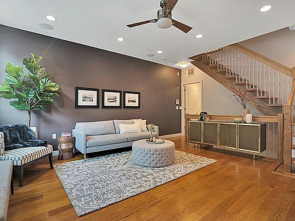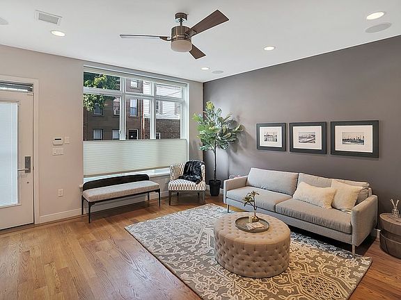Fully renovated single family home in sought after Hoboken location. Sophistication and style set this gracious home with over 2000 sq ft of living space apart from the rest... The lower level offers an inviting Family/Dining Room complimented by a dramatic dark and light custom eat in kitchen highlighted with 3 zone radiant heated floors, SS Viking and Bosch appliances, granite counters, center island with breakfast bar, tile backsplash, a convenient powder room and French doors leading to a delightful paver patio yard, accented by mature shrubs and verdant plantings, for al fresco entertaining at its' finest. The 2nd level offers a sunlit Living Room with a stunning triple mullion window, a guest bedroom (or Master Suite), designer bath with Kohler steam shower, and decorator dual vanity. The 3rd level offers 2 spacious bedrooms, one with a triple mullion window, and a full custom bath with dual vanity. Additional features include maple hardwood flooring throughout the top two floors, 4K video distribution system, a 6 zone Sonos system with 22 in-ceiling speakers and an abundance of closets and storage throughout. This sought after Hoboken location is convenient to transportation, fine dining and chic boutiques, it is the perfect residence for the buyer who wants it all in a fabulous urban setting. 1 year free transferable garage parking included.