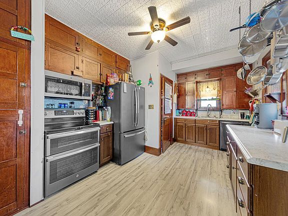 Upon entering, you'll be captivated by the charming front porch, adorned with an abundance of windows that bathe the space in warm natural light. The main level unfolds to reveal an inviting open-concept living room, dining area, and kitchen—a harmonious blend of style and functionality. The kitchen dazzles with newer stainless steel appliances, gleaming countertops, and a generous window that creates a seamless connection with the dining room, allowing the light to flow throughout.