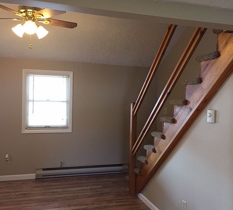 Spacious 1 bedroom loft, 1 bath, 2nd floor apartment for rent. Newly remodeled. Close to Rt. 33. Off street parking, yard, covered deck with included storage space. No smoking. No pets. 1 month security and references required.