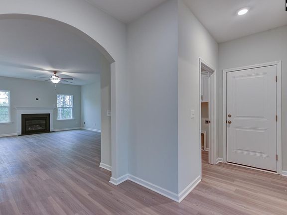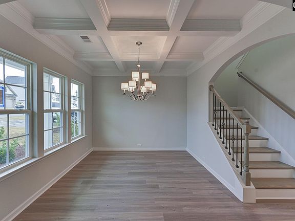 This Victor Plan is a beautiful Master on the Main floor plan with great character throughout the home. When you enter the home the beautiful Shaw Washed Oak color flooring stretches throughout the main living areas. You will also notice the beautiful archways on the formal dining room with coffered ceilings, open railings on the staircase, boxed oak stair treads stained to match the flooring on the main level. Down the hall is the cozy family room anchored with a gas log fireplace. The bright White Shaker kitchen overlooks the family room and has a large quartz island with a single bowl kitchen sink in the center. The Master on the main is quite spacious with plenty of room for a King size bed, it has a large walk in closet, comfort height dual vanity with granite counter tops, separate tub and shower, water closet and beautiful modern finishes. Upstairs are 4 spacious bedrooms 2 great bathrooms, and a huge bonus space. Enjoy the outdoors all year long with a covered back patio, space for your grill, and fully irrigated backyard. This home has all the right touches you will love in your new home. Call today for more info.