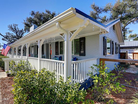 Stunning 3 bedroom 2.5 bath home nestled among the Cove Oaks which survived Hurricane Michael and just 2 blocks from St. Andrew Bay and it's spectacular sunsets. House offers original hardwood flooring, tile in wet areas, new A/C 2020, new roof and new hardy wood siding on home, garage and attached office/shop, fresh paint inside and out, custom shutters, upgraded appliances, new stainless double sink in kitchen, new master double vanities, new lighting, new glass doors with inside blinds, and so much more, you will find custom touches in every room in this amazing home. When entering the home you will notice the very open floor plan which includes the living room, dining room, and kitchen and cozy den complete with a wood burning fireplace. The cook in the family will appreciatethe gourmet kitchen equipped with new KitchenAid gas cooktop with down-draft ventilation, wall oven combo and dishwasher, also a stainless refrigerator, there is plenty of prep and counter space, large breakfast bar making it a place for all of your entertaining. Master suite is very roomy, large tile shower, garden tub and a huge walk in closet with complete with California closet shelving. Plenty of storage space with the large closets, outdoor storage room, utility house and carport attic storage. Ready to entertain look no further this home has a new privacy fenced back yard lined with pavers offering a 20x20 covered outdoor living area, large kitchen/counter space, stainless refrigerator, wine refrigerator, ceiling fans, lighting, fire pit and wired for your electronics. Property has been professionally landscaped, lawn irrigation system the owners even made sure the decorative entry way door matched the house shutters, attention to detail was paid throughout. Homes like this seldom become available, call for your private showing today. All ages, sizes including sq. ft. are approximate measure if important.