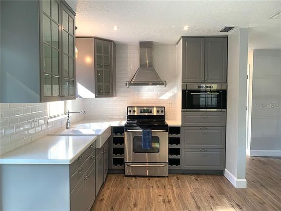 This sweet home is nestled on a quiet side street in a well established neighborhood in Brooksville with no HOA no CDD. Totally updated property features 2 bedrooms, 1 bathroom, separate laundry room, huge yard that has new wood fencing, and storage shed. Freshly painted interior and exterior, newer tankless water heater, newer ac, new soft closing cabinets, new flooring, newer kitchen appliances, and roof 2017. Plenty of windows for natural light, kitchen and living room combination, bathroom updated with standing shower and glass doors, dual vanities, and new barn door. The home is conveniently located to all area amenities and the active entertainment of Main Street in downtown Brooksville. Excellent property for a small family or ideal to an investor as a rental. Has a car port that could easily be converted to a garage. Don't miss out on this one.