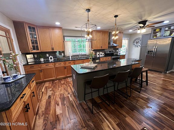 This property is a MUST SEE! Along with all it offers, the Seller has had septic and pest inspection done for you! Will share reports. Gutted and remodeled with a great floorplan and style in mind! This 3 Bedroom, 2 1/2 bath home has a lot to offer! It starts with the stunning entrance of stone on the front porch, leading into the newly designed foyer, dining room, living room with electric fireplace and a kitchen you dream of.! Center island, granite countertops, lots of cabinets and storage space including a pantry, an additional area with a coffee bar, plus all new stainless still appliances. All appliances convey. Utility room leads out to the carport, with 1/2 bath included for easy access from inside or outside the home. Admire the beauty throughout of the engineered hardwood flooring and the porcelain tiles in the bathrooms. Master bedroom with master bath and a walk-in closet are a plus. Relax and enjoy another great addition of a large deck on the back, providing lots of grilling, sitting and entertaining room. Enjoy the sunshine or pull out the attached awning to provide cooling shade when needed. Remodeling was done between 2022-2023. New flooring, new wiring and plumbing, additional and redesigned bathrooms, new heat pump, new roof, gutters and more! Appealing flower beds, landscaping, and wood fencing with solar lightning on top, add the finishing touches to the home and yard. If you are looking for peaceful country living, then look no further! Only 5 miles from town for convenience and only an hour from the beautiful Outer Banks! Great hunting and fishing opportunities nearby!!