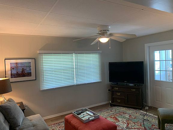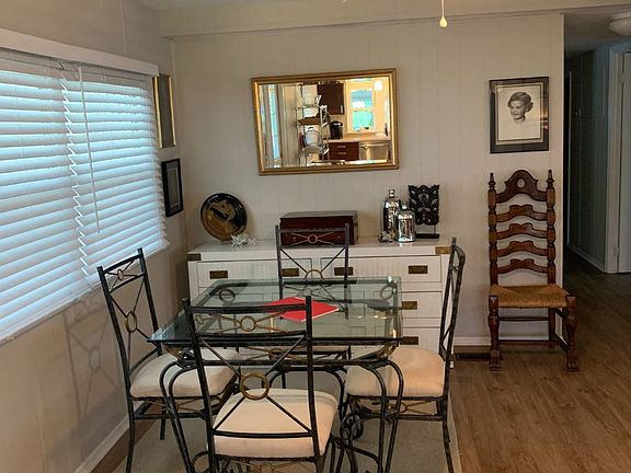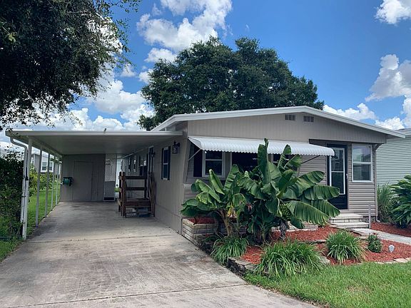 This is a mobile home for sale in a 55+ community on a rented/leased lot. This mobile home has been updated from the bottom up! There are water views from the kitchen and sun room. It is located on a cul de sac for privacy and security. It is 1 block from the marina on the Manatee River. The home comes unfurnished. The exterior has newer brick skirting, it has been newly painted and the roof over roof has been elastomer coated and sealed. There are many new thermal insulated windows and doors, new sub floors and the A/C is 8 years young. There is over 1,200SF for living, dining and entertaining in this upgraded home including a sun room and kitchen with a water and sunset view. You can choose to enter the home via the front sun room (great for guests) or via the carport (great for groceries). The home has an open floor plan. The kitchen flows into the dining area, living room and sun room for easy living and entertaining. The kitchen has laminate floors, pendant lights, fresh paint, newer cabinets, newer counter tops and a storage pantry. The cabinets include an appliance 'garage' and a Lazy Susan cabinet for that hard to reach corner. The appliances include a refrigerator, microwave/convection oven, dishwasher and a garbage disposal. The formal dining area has laminate floors, a ceiling fan and 2 inch cordless blinds. The living room area has laminate flooring, a ceiling fan and 2 inch cordless blinds. The sun room is under a/c and has a water view, thermal windows, a drop ceiling with insulation, a new light and a porcelain floor. The Master bedroom at the back of the home has laminate floors, 2 closets, a ceiling fan and 2 inch mini blinds. There is a full bath ensuite that has been re-plumbed with an updated vanity, toilet, lights, fans, tub and shower surround and porcelain floors. Bedroom two is large enough to be used in combination with a craft room or office. There are 2 closets, a ceiling fan and laminate floors. The hall or guest 1/2 bath has been re-plumbed and updated with a new vanity, toilet, lights, fans and porcelain tile floors. Across the hall you will find a utility room with washer/dryer (not included) hook-ups. There are laminate floors, overhead cabinets and a wall of closets and storage. The carport can park two cars tandem style and there is a shed off the back for more storage. The lot rent is $775 and includes water, sewer, trash, lawn, and all the community amenities below. Colony Cove has been named 'Best Retirement Community' six years in a row by the Herald-Tribune of Bradenton. Colony Cove 55+ retirement mobile home community has a wealth of amenities designed to keep up with your active lifestyle. Located in beautiful Ellenton, FL, just inside the Sarasota/Bradenton metro area, the Colony Cove community features beautiful banquet rooms, nice billiard facilities, a private boat dock, and five spacious clubhouses. Great fishing opportunities, huge game rooms and well stocked libraries are also great diversions. Take a dip in one of the five heated swimming pools, or challenge your friends and neighbors to a friendly match on either the shuffleboard or tennis courts. Colony Cove also offers on-site management, laundry facilities, RV storage, a woodworking shop, two fitness centers and a dog park to make your active lifestyle more enjoyable.