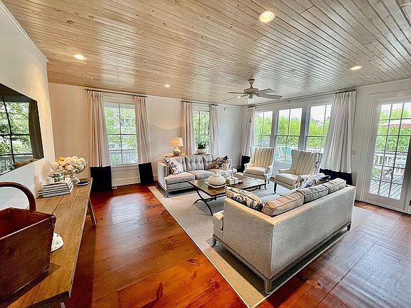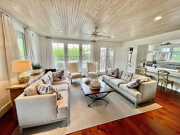 This home is one of the loveliest, traditional style homes in the Village of Saltaire. Located on a large, fully landscaped lot with mature trees and a stunning perennial garden, the 2900+ SF home has a number of unique features rarely seen in Fire Island homes. The house was designed and built for year-round living and includes heat and central air conditioning. The house is elevated to the FEMA standard. There is a full basement. Never leave a bicycle or wagon out to rust in the weather again! On the entry level, the living/dining/kitchen are all open. There are oversized windows throughout. With nine foot tongue and groove wood ceilings and wide plank pine floors, the interiors are light and welcoming. The kitchen and living areas spill out directly to both the screened-in porch and the private oversized main deck. There is custom milll work throughout the house. The kitchen has a dual fuel gas range and other stainless appliances. All top of the line. Also on the main level? A gracious entry and two generously sized bedrooms, one with a built in desk and cabinetry. There is one full bath on the main level. Upstairs, the master bedroom has views of the Great South Bay and Clam Pond Cove. There is also a large fourth bedroom which has a fully built-in office space. There is another full bath on the upper level. If that is not enough, the house boasts a gym room. The gym is large enough for a Peloton, should you want one, and other equipment, weights and mats. This home has been meticulously maintained and was built to a standard not typically seen on Fire Island. *Homeowner/Seller is also the Listing Broker.