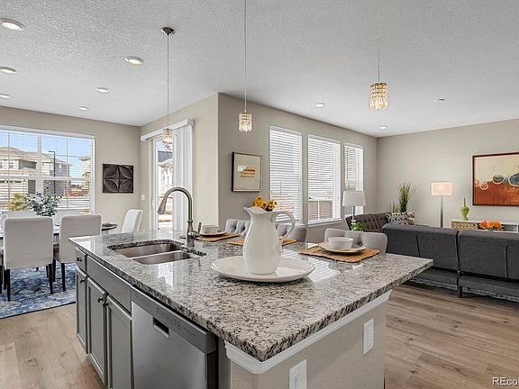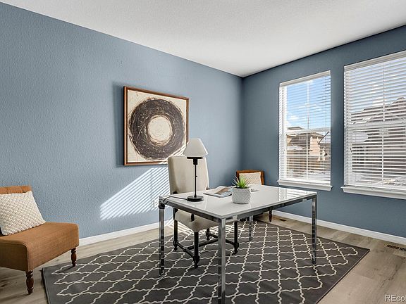 Welcome home! Start the new year in the quiet neighborhood of Lagae Ranch in Castle Pines. This well-planned home has everything you could want and more! The welcoming entrance begins with a study behind french doors. Your eyes are then directed to all the many windows in this bright open floor plan. Relax or entertain in the oversized family room with a gas fireplace and a stunning eat-in kitchen featuring a granite island, stainless appliances, and a walk-in pantry. Off of the kitchen is a multi-use nook for studying, crafting, or a coffee bar! Upstairs you will find 4 bedrooms. The luxurious primary bedroom has coffered ceilings, a 5 piece bath, and a generous walk-in closet. The other 3 bedrooms all have private bath access via en-suite or Jack-N-Jill. Your guest may stay longer because of the newly finished basement with the private bedroom, a 3/4 bath, and large family room with another fireplace. Outside you will find a large patio with stamped concrete and automatic sprinklers for the nicely landscape yard. There is plenty of parking and garage space with the three-car tandem garage. Pride of ownership is easy to see in this well-maintained home.