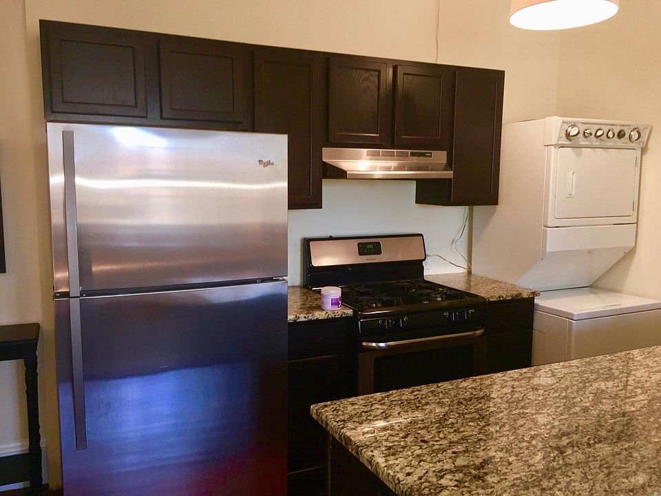 Third floor walk up water front suite in the historic Biddle Mansion. Incredible private upper deck over looking the water. Updated kitchen with granite counter and stainless steel appliances, fresh bathroom, washer and dryer, hardwood floors and central AC. Fantastic water views from every window! 15 minutes to down town Philadelphia, 2 blocks to the River Line. Quiet, scenic location! Starting at 1670 per month. Tenant pays own gas and electric Pets will be considered