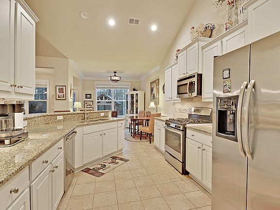 This lovely home in the Carillon 55 and over community of the Ponds is beautifully designed for comfort and stylish living. Walk into a relaxed atmosphere with 2 bedrooms on one side and the master in the back overlooking the beautiful private yard with a great gazebo. The kitchen with beautiful white cabinets, granite countertops, gas stove & large pantry overlooks the family room, breakfast area & dining room. Outside the owners have added an all weather room for extra space in the winter or a screened porch in the spring and summer. Take a walk outside & dine under the pretty gazebo with a private wooded lot. This lot, with full irrigation, is larger than most in the community. The HOA provides lawn care and they also take care of all of the common areas, lighting and landscaping. Carillon's HOA budget is healthy and the neighborhood enjoys cookouts together with seating in the screened pavilion just down the street. The Ponds has great amenities at the historic farmhouse to include a large salt water pool, Picnic pavilion, amphitheater & walking trails. There are miles of kayak and canoe trails. The local YMCA is located in the front of the Ponds subdivision. There is also a fire and rescue division by the YMCA.
