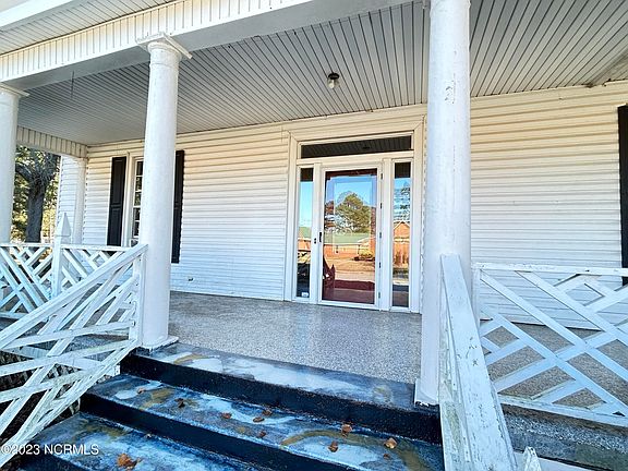 A large and very attractive home in the small town of Hobgood NC.   While small in size Hobgood is  large in community pride, friendly people and the best local Grill anywhere.  This c1920 home has seen several additions over the years including a large primary suite with jacuzzi tub and extra large walk-in closet.   The front rooms of the house have high ceilings, wood floors and fireplaces. The very large kitchen has plenty of room for prepping, dining and entertaining. The back rooms have various, durable commercial finishes applied.  The full, wide front porch is perfect for greeting neighborhood walkers, having morning coffee and relaxing after work.  The back deck offers relaxing space in full privacy and the entrance to the back den.  The vinyl siding and replacement windows increase the energy efficiency of this home. The back yard is enclosed with a wooden privacy fence.  The corner lot is adjacent to the Hobgood Charter School campus.  Some work may be required; eligible for a renovation loan.