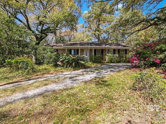 Double lot, solid brick, classic ranch home, with tons of potential that a ranch style provides, in the heart of Olde Towne Daphne! Real wood tongue and groove kitchen walls with vintage cabinetry give this hidden gem the bay house feel of yesteryear! 300+ foot wide flat yard is booming with rare Mature heirloom, azaleas and other flowering foliage. The property features a storm fortified cellar, new roof, and covered porches. For the creative, a potential development opportunity exists! Walk to Mobile Bay, shopping, restaurants, and parks! You can’t beat this location! Schedule a tour today! Buyer to verify all information during due diligence.