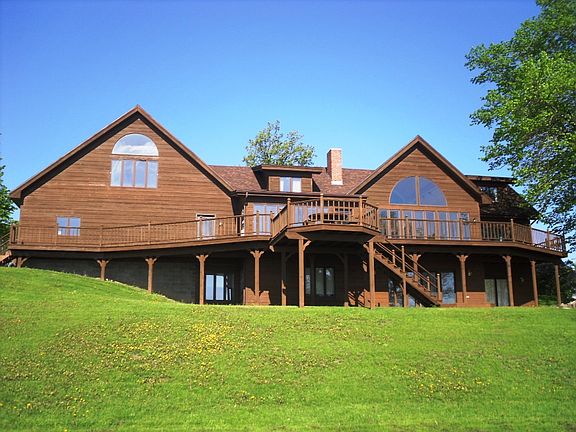 Beautiful 6 bdrm, 6 bath ranch style hm with 4737 sq. feet on Big Turtle Lake W/approx 1418' of lakeshore. Included is a 137'x 248'regulation sized arena w/heated stables. Home has a stunning fire place, hardwood flooring, formal Dining room, huge lakeside decks. 37+- ac of privacy,which borders state land