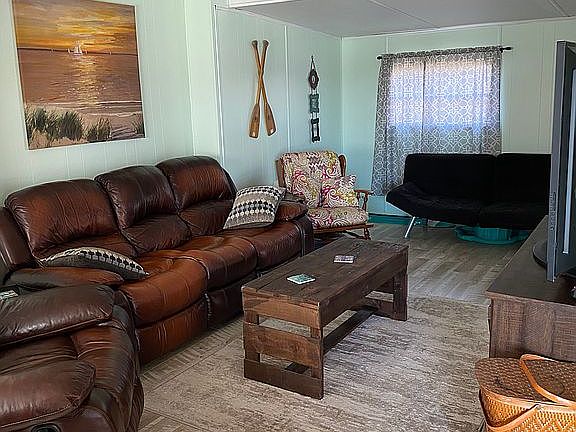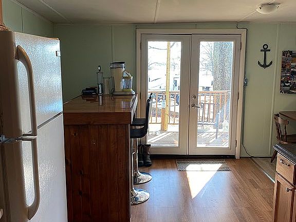 Lake views of Grand Lake. 3 bedrooms plus sleeping room. Completely remodeled. Large covered deck. Price includes house, lot, furniture and appliances. One block from marina.